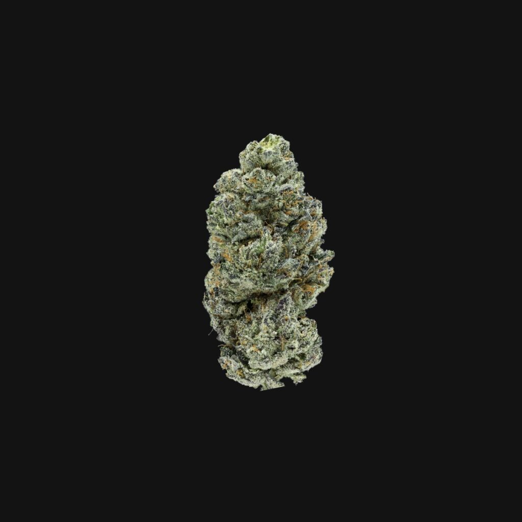 - Appearance:Â Dense, frosty buds with a sticky layer of trichomes and occasional purple hues; strong garlic scent intensifies after curing